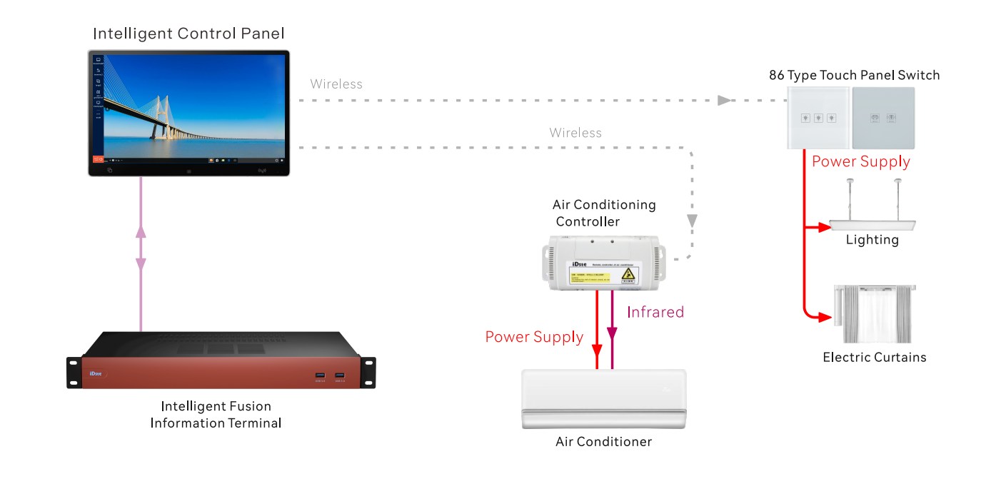 Each device can be set to turn on or off at a specific time. It can be scheduled based on the usage habits of different classrooms for energy saving.